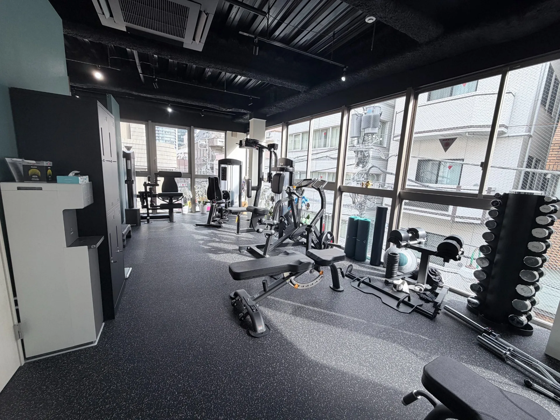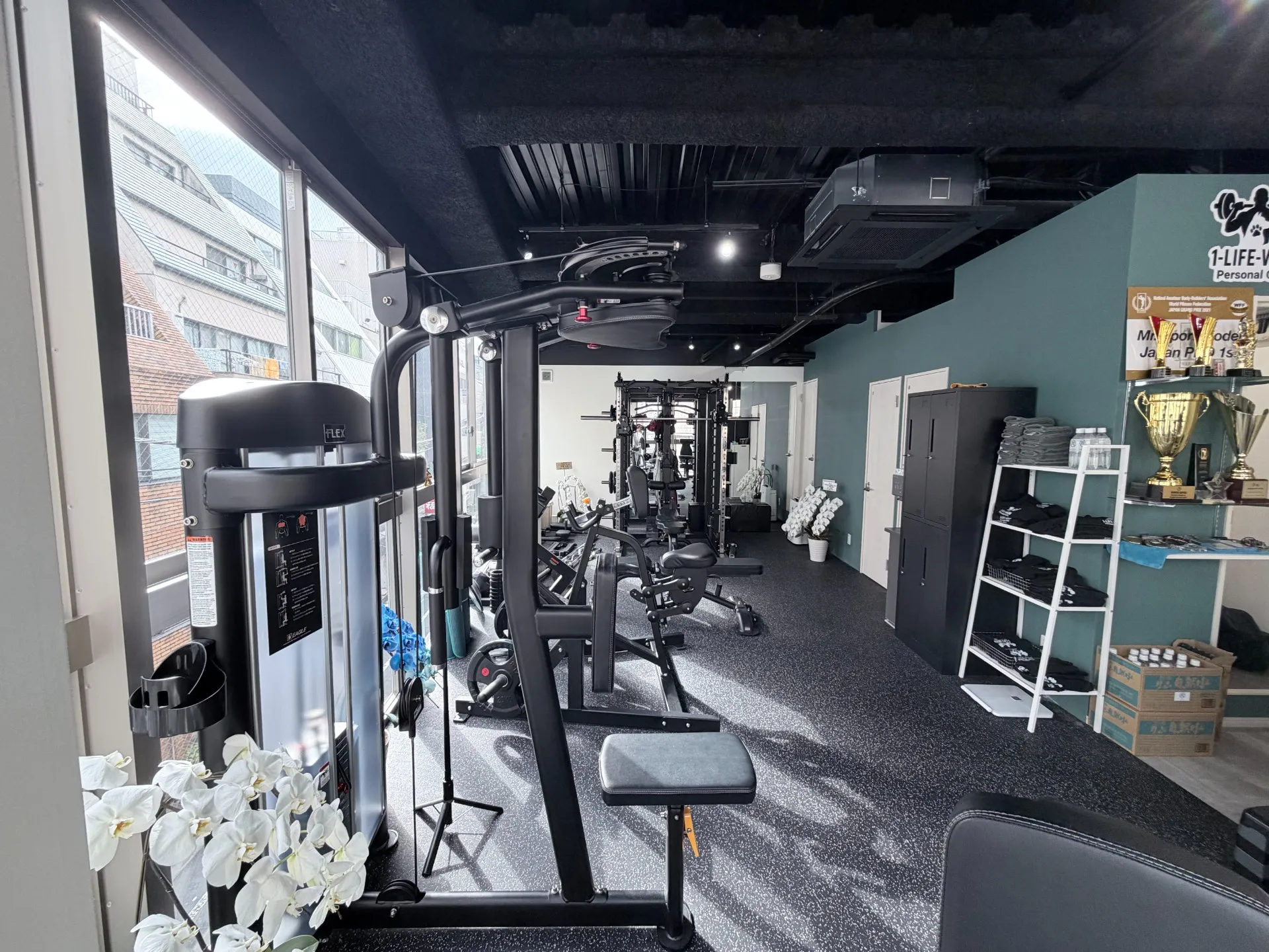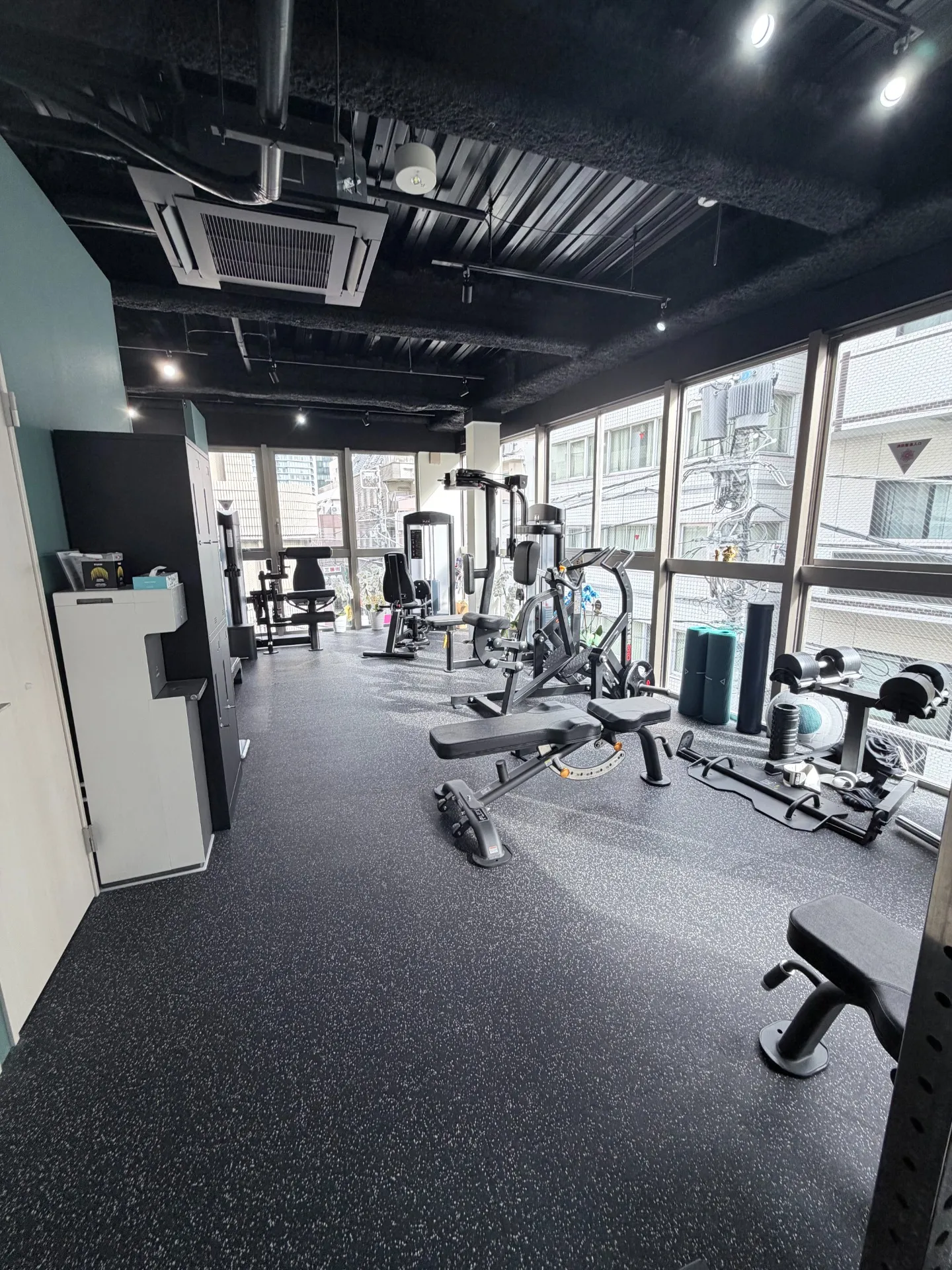 スタジオの雰囲気や実際の設備を、写真を通じて視覚的にもわかりやすくご紹介しています。都心の喧騒を忘れさせる落ち着いた内装や、広々としたトレーニングスペースの様子から、実際に身体を動かす際のイメージを具体的に膨らませていただけます。完全予約制ならではの、ほかの方を気にせず自分自身の課題に集中できる静かな環境と、清潔感に配慮した空間をご覧ください。